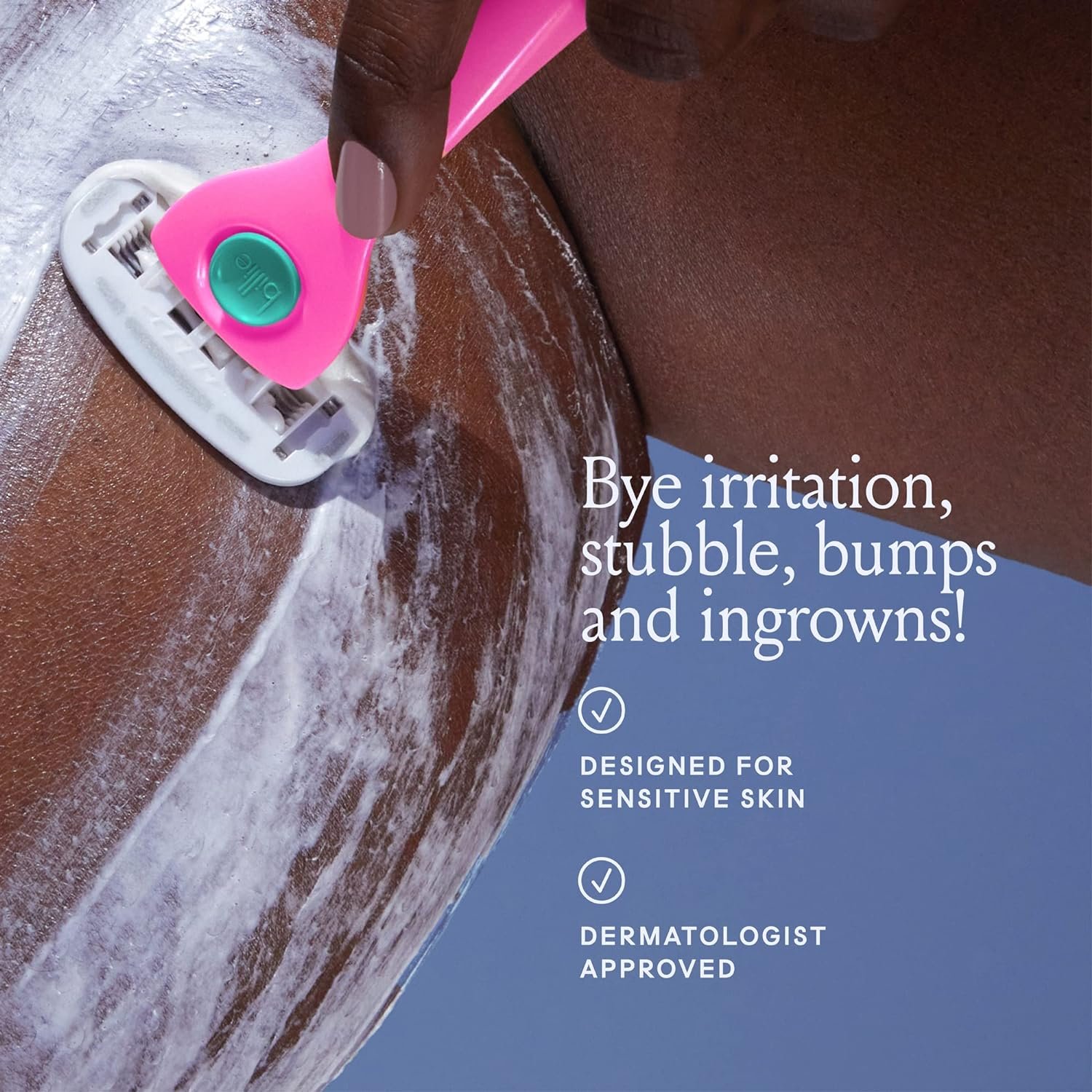 DERMATOLOGIST-APPROVED: The Billie razor and refill blades are safe for all skin types, including sensitive skin. Say bye to stubble, irritation, bumps and ingrowns! Say hello to smoooooooth skin.