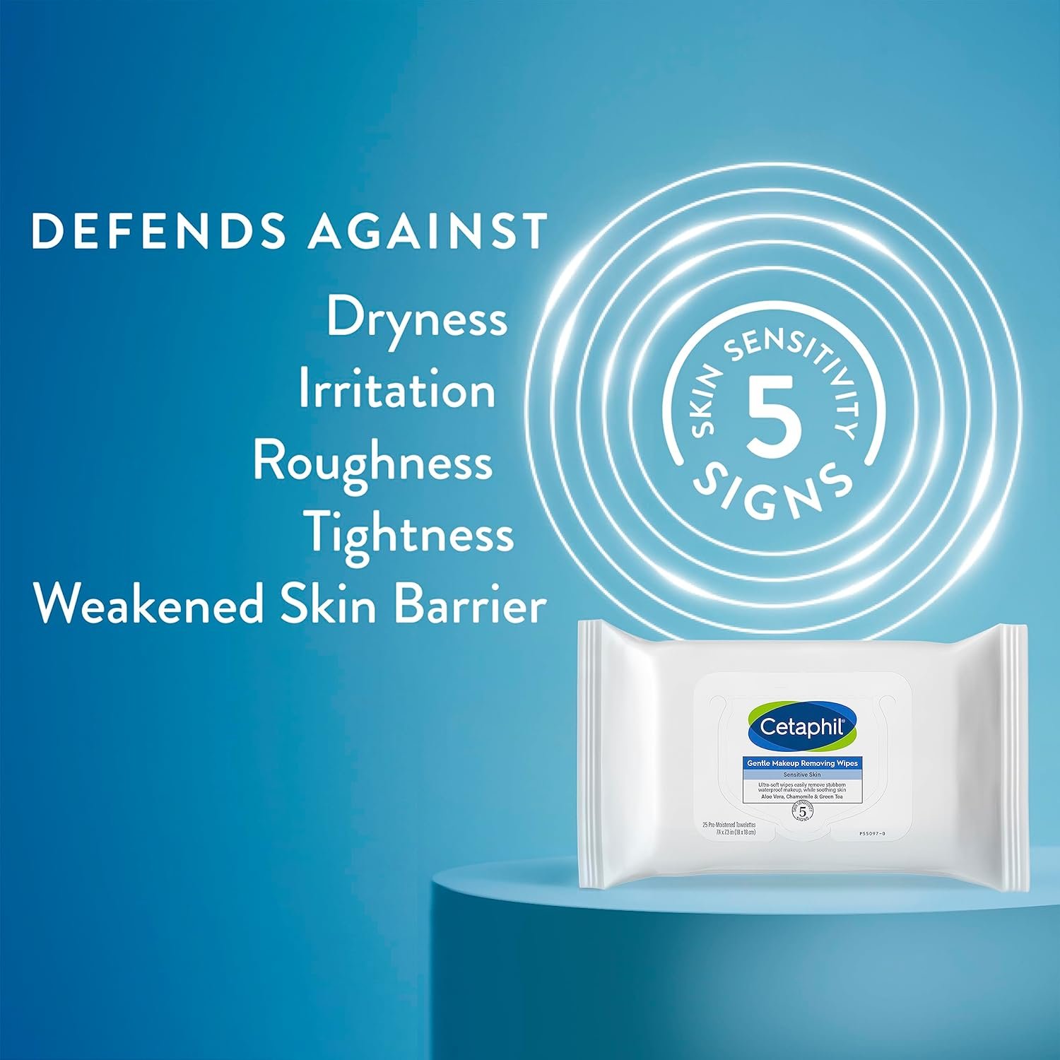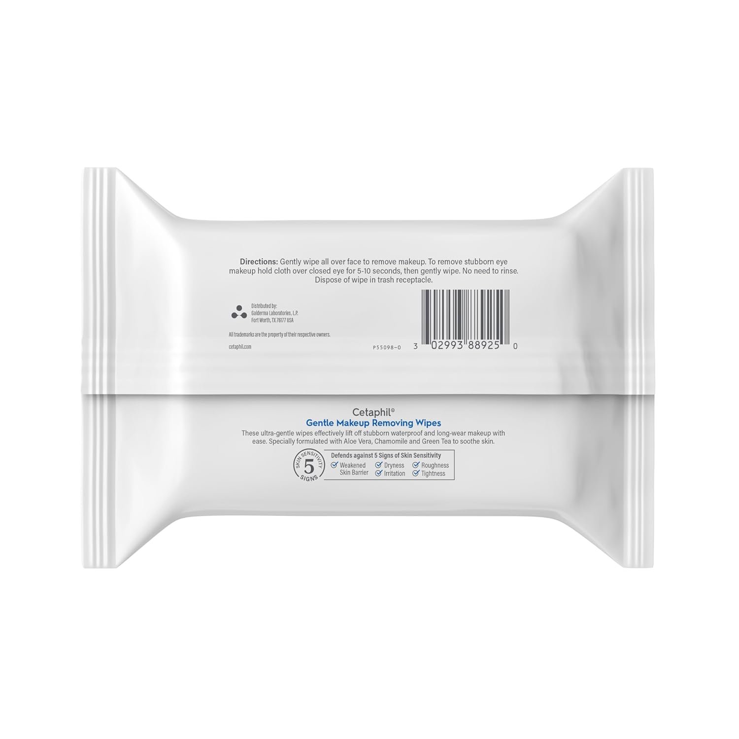 CETAPHIL GENTLE MAKEUP REMOVING WIPES FOR SENSITIVE SKIN: Effectively lift off stubborn waterproof and long-wear makeup with ease