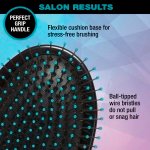 NO SNAGS: Ball-tipped wire bristles in the cushion base reach deep into your hair without the annoying discomfort of snagging to slow you down. Your hair is left smooth, manageable, and tangle free.