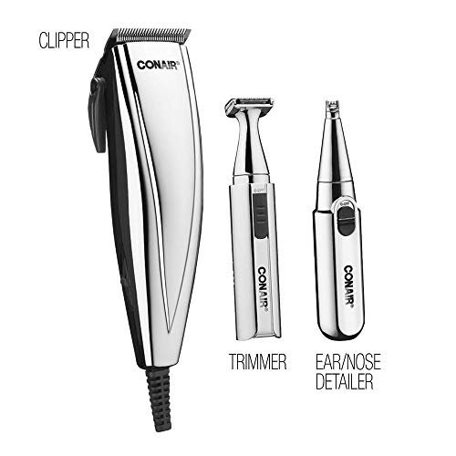 PROFESSIONAL RESULTS AT HOME: This 3-in-1 kit features a battery operated chrome detail clipper, battery operated hair trimmer, and battery operated nose/ear trimmer plus accessories– Perfect for virtually any haircutting and grooming job