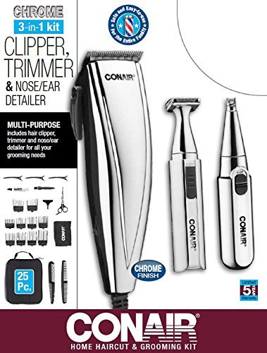 ConairMAN 3-in-1 Chrome 25-piece Hair Clipper, Includes Battery Operated