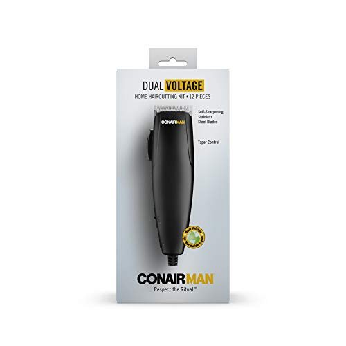 PROFESSIONAL RESULTS AT HOME: Conair’s 12-piece dual voltage haircut kit is a corded hair clipper that cuts all hair types and styles with taper control and self sharpening stainless steel blades for precision results