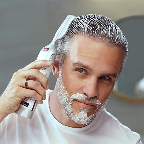 Just click together, shake, press the button and comb the foam into hair. No gloves required
