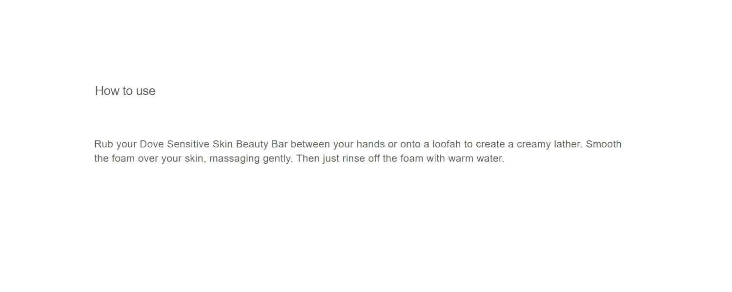Dove Sensitive Skin Beauty Bar combines classic Dove cleansers and 1/4 moisturizing cream in a fragrance free, hypoallergenic bar that’s gentle enough for sensitive skin. And now, we are bringing you Dove’s same great formula in an all-new look. Dermatologist recommended and suitable for daily use, it can be used as a hand soap, gentle facial cleanser and body soap. Proper sensitive skin care depends on having a cleanser that truly cares for your skin and won’t dry it out like an ordinary soap can. Washing with regular soap can cause skin to feel dry and tight. What makes Dove different? It’s the combination of gentle cleansers and moisturizing ingredients that help to nourish skin. With unscented, hypoallergenic cleansers and 1/4 moisturizing cream, Dove Beauty Bar can be used as a face cleanser, as well as a gentle cleanser for your body and hands, leaving you with instantly soft skin and lasting nourishment. The secret to beautiful skin is moisture, and no ordinary bar soap hydrates skin better than Dove. At Dove, our vision is of a world where beauty is a source of confidence, not anxiety.