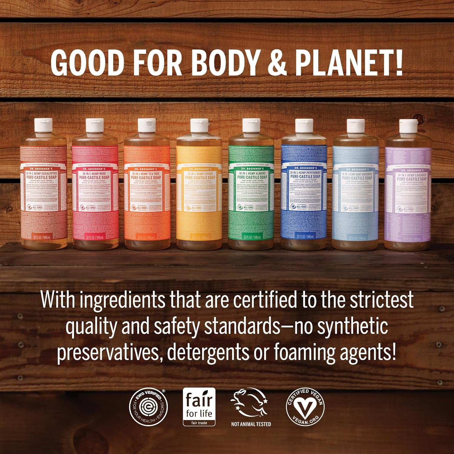 REGENERATIVE ORGANIC CERTIFIED: Dr. Bronner’s products are Regenerative Organic Certified ensuring they meet the highest standards in organic farming including soil health, animal welfare, and social fairness. *Only products purchased from “Dr. Bronner’s” as the Amazon Seller are ROC
