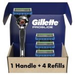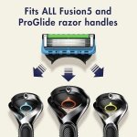 The Gillette ProGlide men’s razor with FlexBall technology responds to your contours giving you uncompromising closeness and comfort. The handle’s FlexBall technology responds to contours and the blade refill features 5 antifriction blades for a shave you can barely feel. The blades are spaced closely together for incredible comfort with a precision trimmer on the back for hard to reach places and for styling your facial hair just the way you want it. The enhanced lubrastrip (vs. Fusion5) has more lubricants for comfort and glide. This enhanced lubrastrip also fades when you are no longer getting an optimal shave. Soft microfins gently stretch and smooth your skin to prepare hairs for a close shave while a microcomb helps guide your hair for a close shave from our thinnest blades. The ProGlide razor for men features our sharpest blades (first 4 blades) which help get virtually every hair effortlessly. One razor blade refill lasts up to one month of shaves. All ProGlide blade refills can fit all Gillette 5 blade razor handles (excluding GilletteLabs).