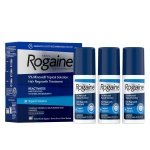 REGROW THINNING HAIR: 3-month supply (three, 2-fluid ounce bottles) of Men’s Rogaine Extra Strength Unscented 5% Minoxidil Topical Solution to help treat hair loss, maintain hair density & allow for the regrowth of fuller hair