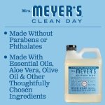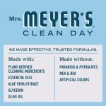 Mrs. Meyer’s Clean Day hand soaps are specifically made to clean and freshen hands without over drying, while also providing a special, singular scent for your home. Drops of Rain Water fall on leaves and noses and fill the air. Our Rain Water scented soap has a scent so clean, hinting of white flowers. Splash in a puddle! This hardworking hand soap formula contains olive oil, aloe vera, and essential oils, and thoughtfully chosen ingredients that clean and freshen hands. Made without parabens, phthalates or animal-derived ingredients and always a cruelty-free formula soap. Also available in other garden-inspired scents and products such as Dish Soap and Multi-Surface Cleaner. Mrs. Meyer’s – Rooted in Goodness.