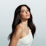 Image of woman wearing white suit jacket with very long gray hair that is smooth, conditioned,
