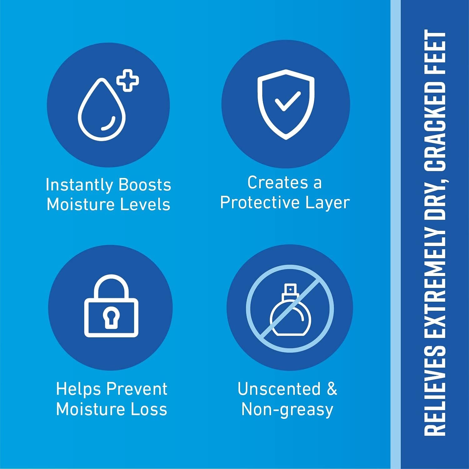 Foot Moisturizer : Creates a protective layer on the skin’s surface that instantly boosts moisture levels and helps prevent further moisture loss for foot care and health.