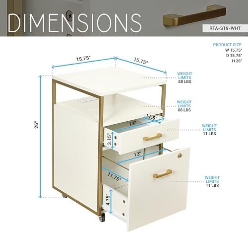 Techni Mobili Salon Storage Cabinet with Lock, 2 Drawer Organizer