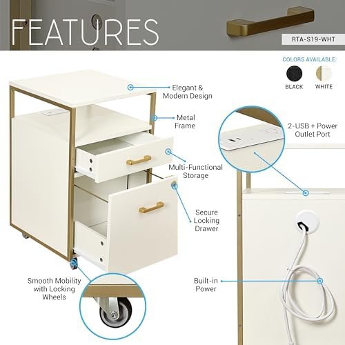 Chic Salon Style in White & Gold: Add a touch of elegance to your salon with this modern white and gold cabinet. Its clean lines and luxe finish elevate any hair, nail, or beauty room décor.