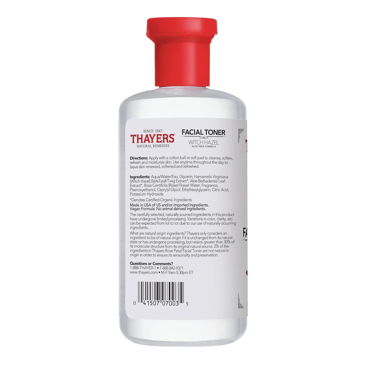98 Percent Natural Origin Ingredients: Made with certified organic Witch Hazel grown and harvested exclusively for Thayers on a family farm in Connecticut, and certified organic Aloe Vera