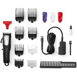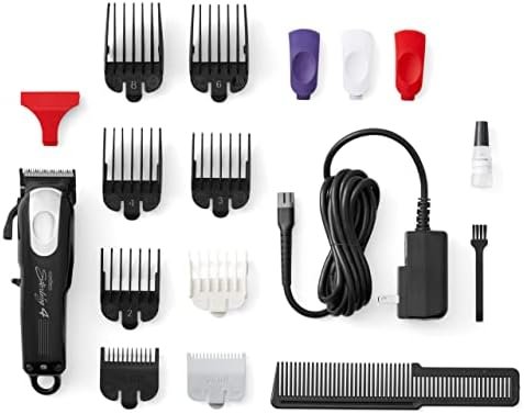 Hair Cutting Kit: Sterling 4 Cordless Clipper comes with 8 attachment combs and charge cord; Sterling Mag Trimmer comes with 4 attachment combs and stand; includes oil, cleaning brush, styling comb, and red blade guards